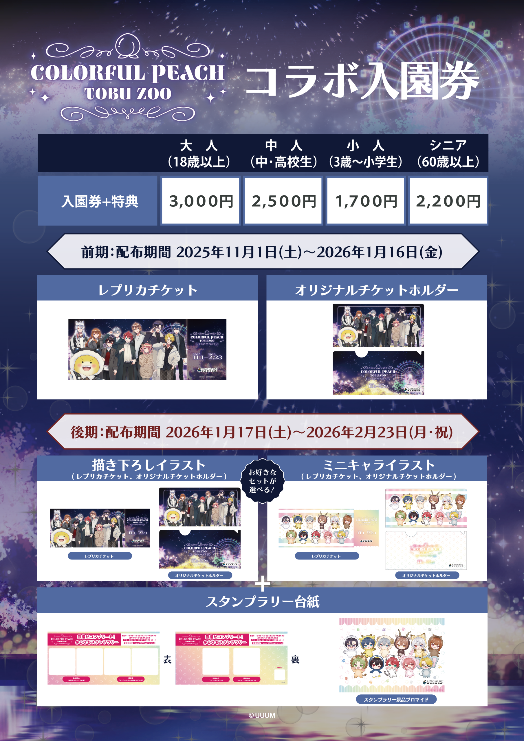 また、2026年1月17日(土)以降に『コラボ入園券』をご購入いただいたお客様には、スタンプラリーにご参加いただける「スタンプラリー台紙」をお渡しします。すべてのスタンプを集めたお客様には「スタンプラリー景品ブロマイド」をプレゼントします。