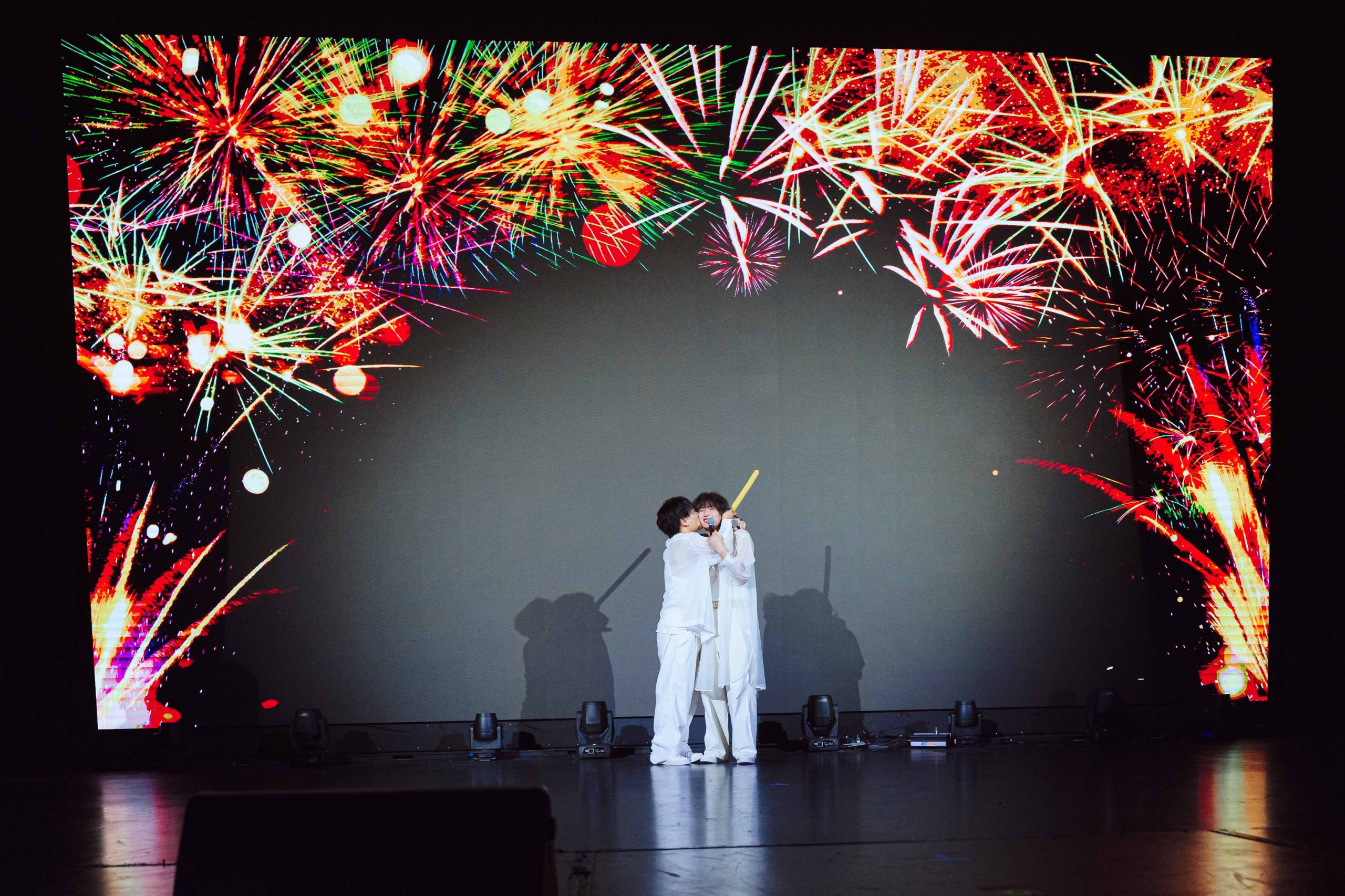 ビデオメッセージが終わったら、お母さんがケーキを持って登場。家族みんなで支え合ってここまで来た姿に、会場全体がじんわりあったかくなったような気がします。そして3人からのラストメッセージ。しょうさんからは、「一生一緒にいてくれよな。僕らは本当に幸せです」という愛に溢れた言葉が。しょうさんが泣いて、次はすずさんが号泣して、そんなすずさんをしょうさんとこうさん2人で支える姿を見て、すずしょうとのYouTubeはこうして始まったんだろうなって、これまで過ごしてきた日々がひと目でわかる時間でした。