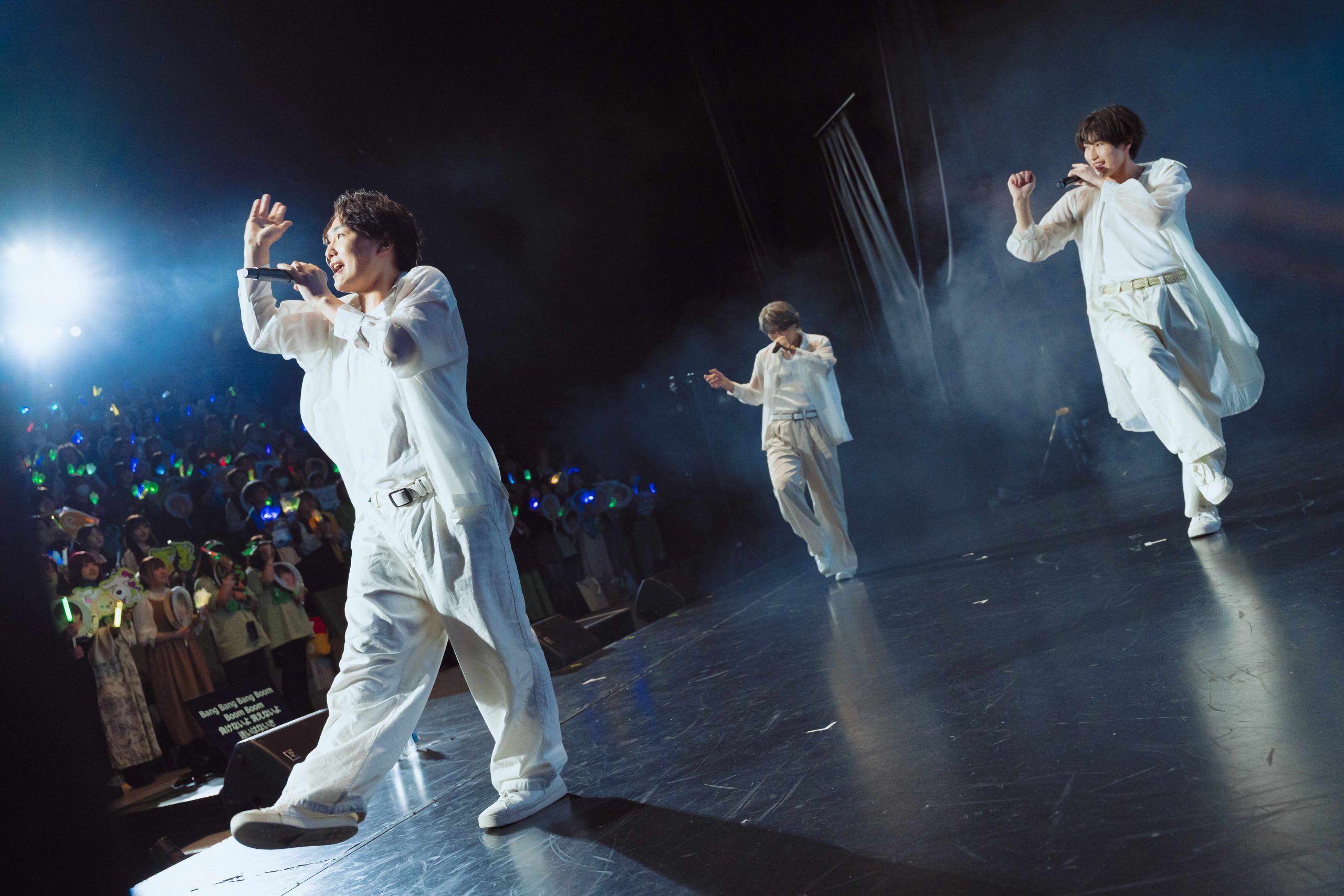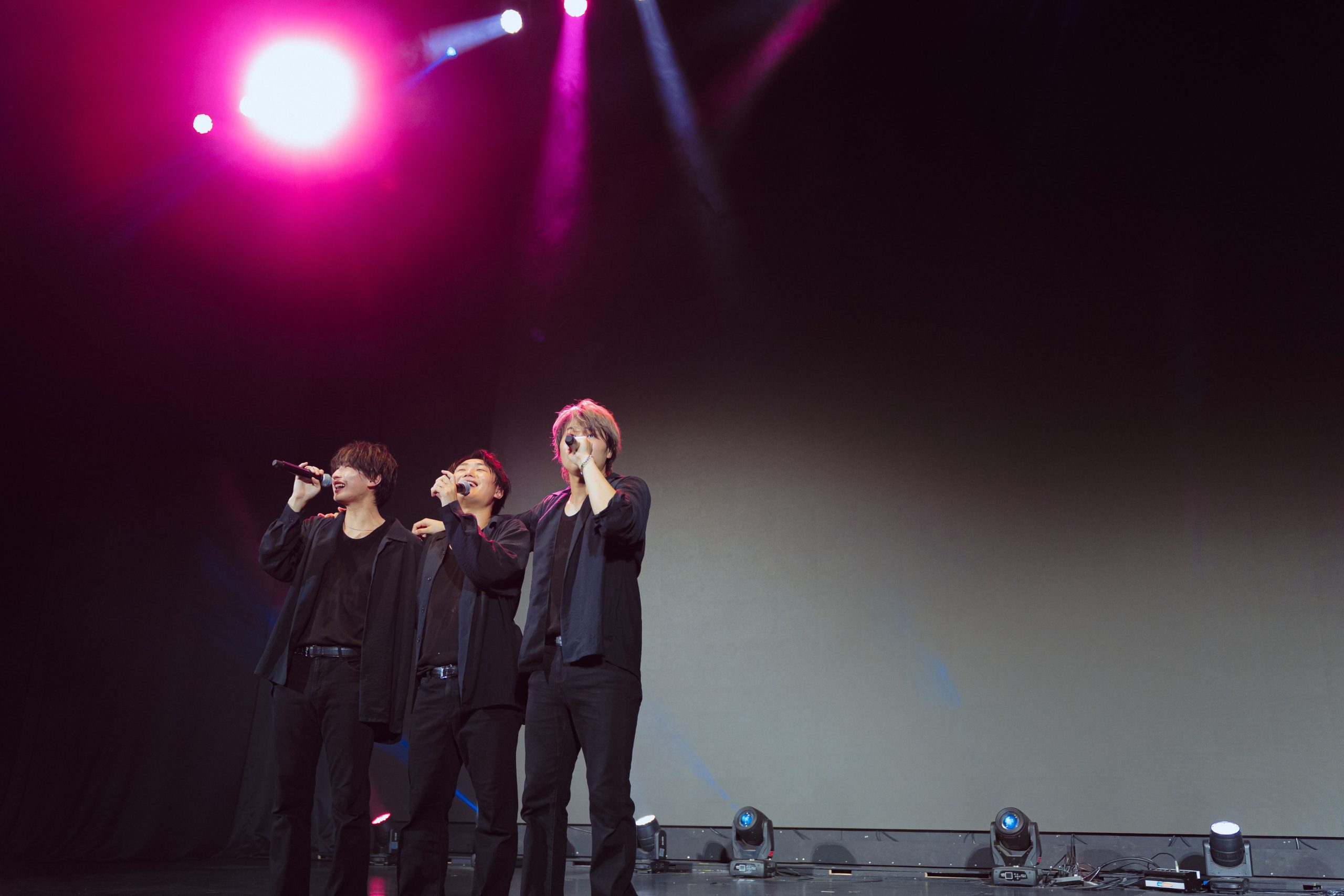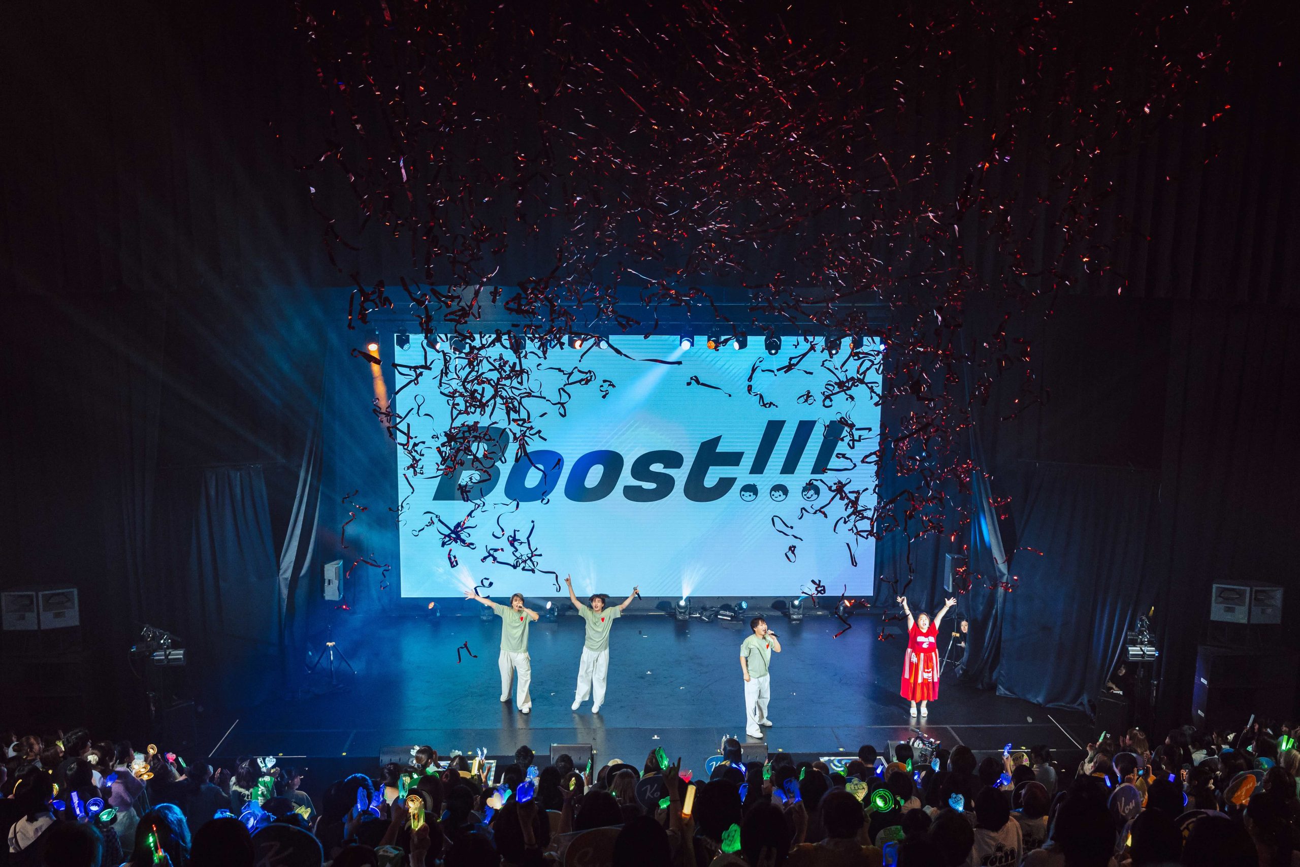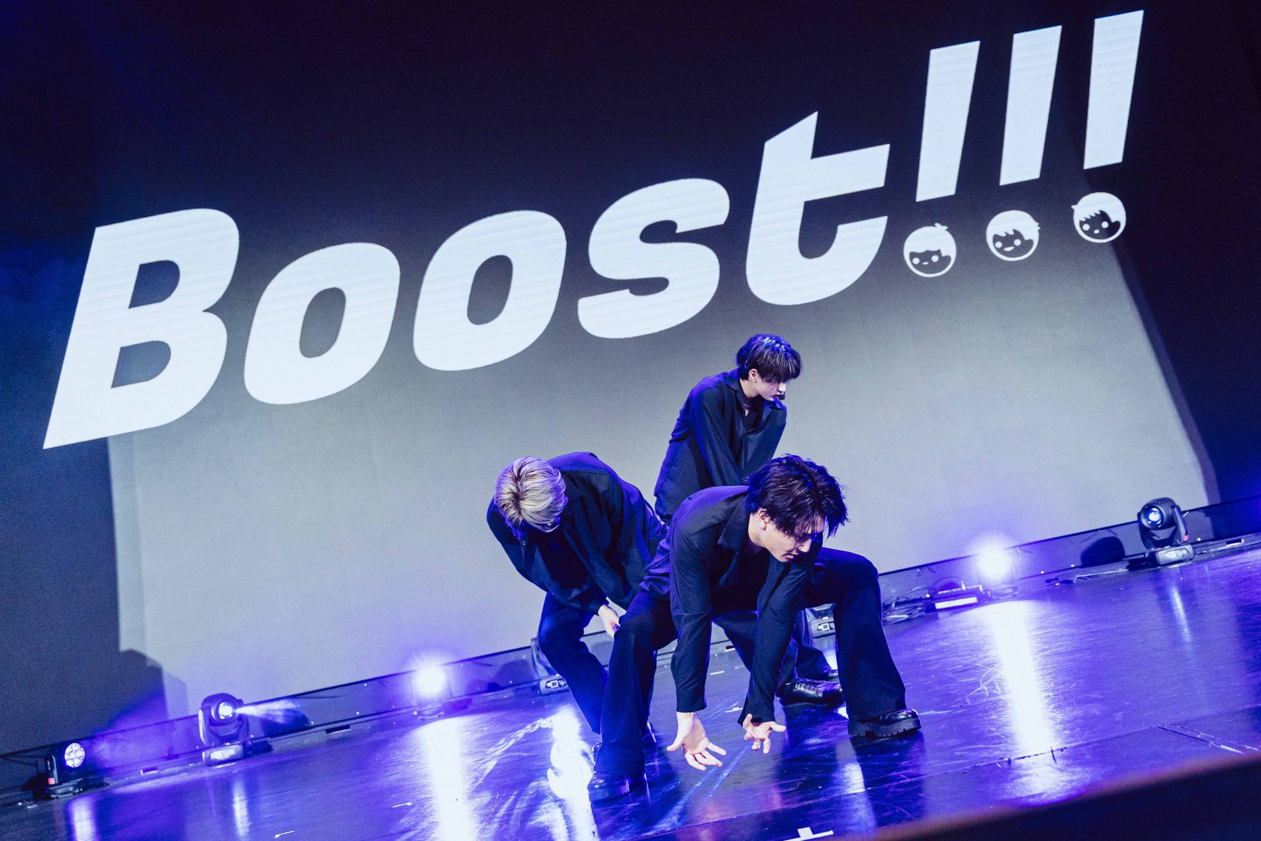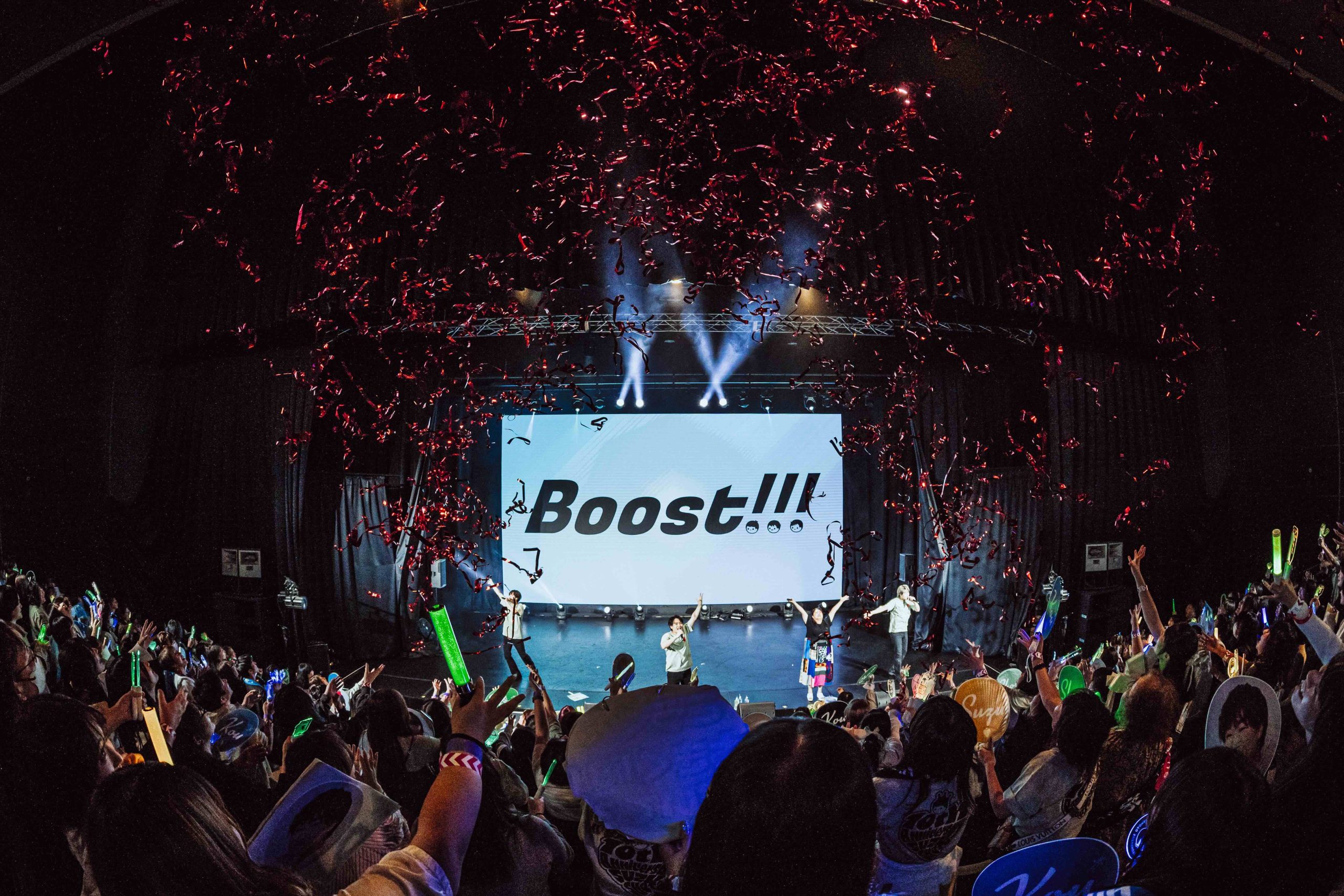 すずさんのラップから始まった1曲目。しょうさんの安定した歌声のあとには、こうさんの低音ラップが続き、ついにラスト公演『Boost!!!』が開幕。