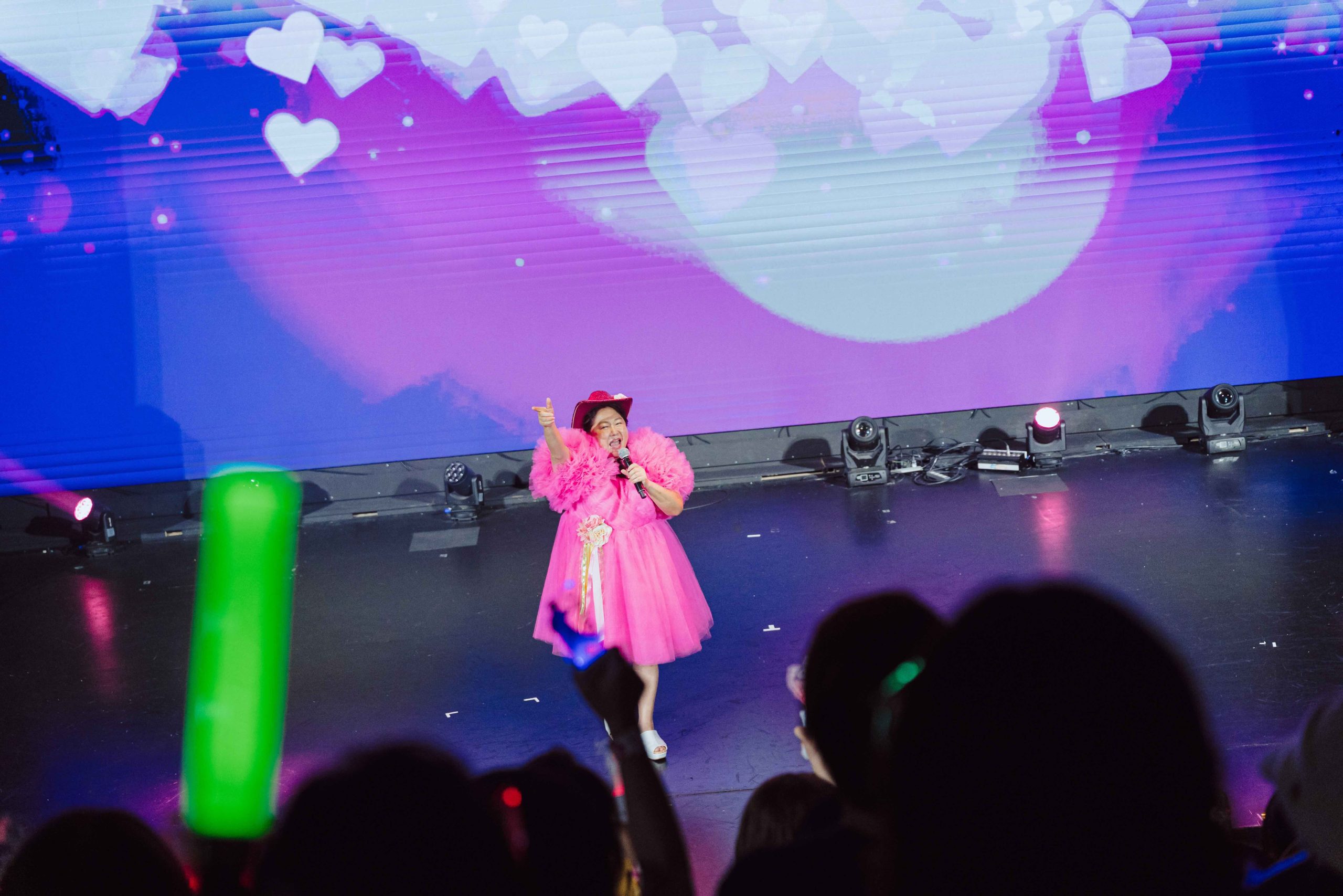 さすがの歌唱力でありながらアイドル顔負けのド派手衣装には、思わずみんなが笑顔に。