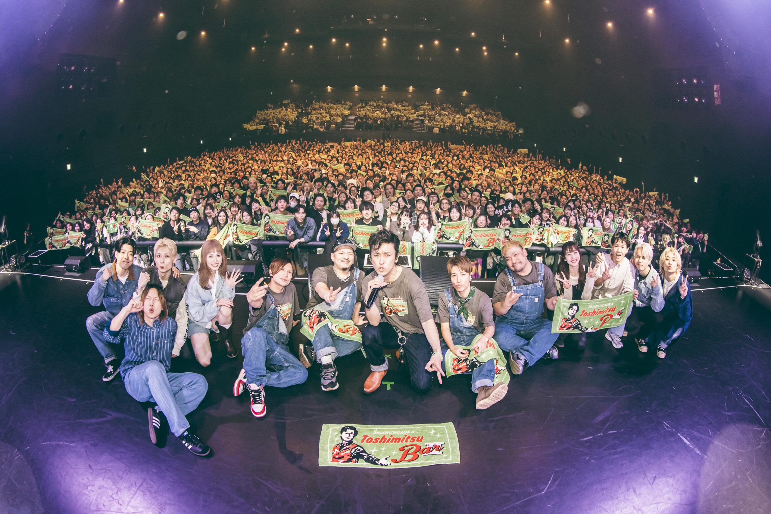 会場のボルテージが最高潮に高まったところで観客と一緒に記念写真。
