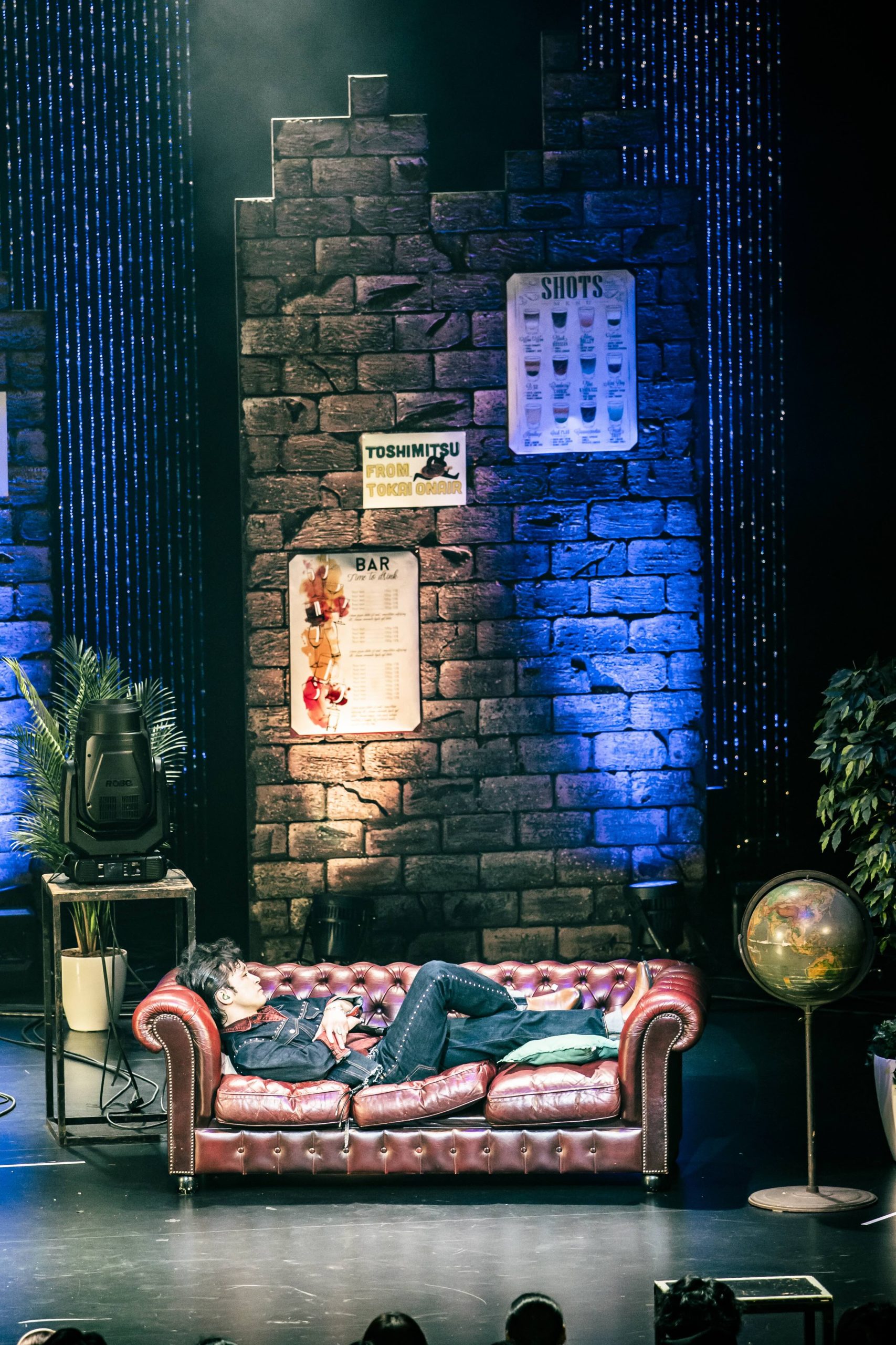 曲が一旦ストップし、ステージに置かれたソファーに寝転がる俊光。
