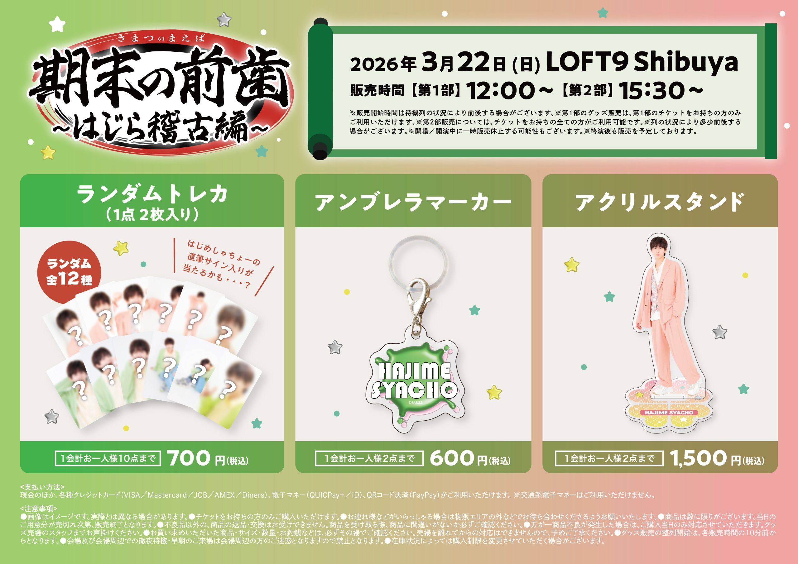 会場の電波によってはキャッシュレス決済が難しい可能性がございます、予めご了承ください。