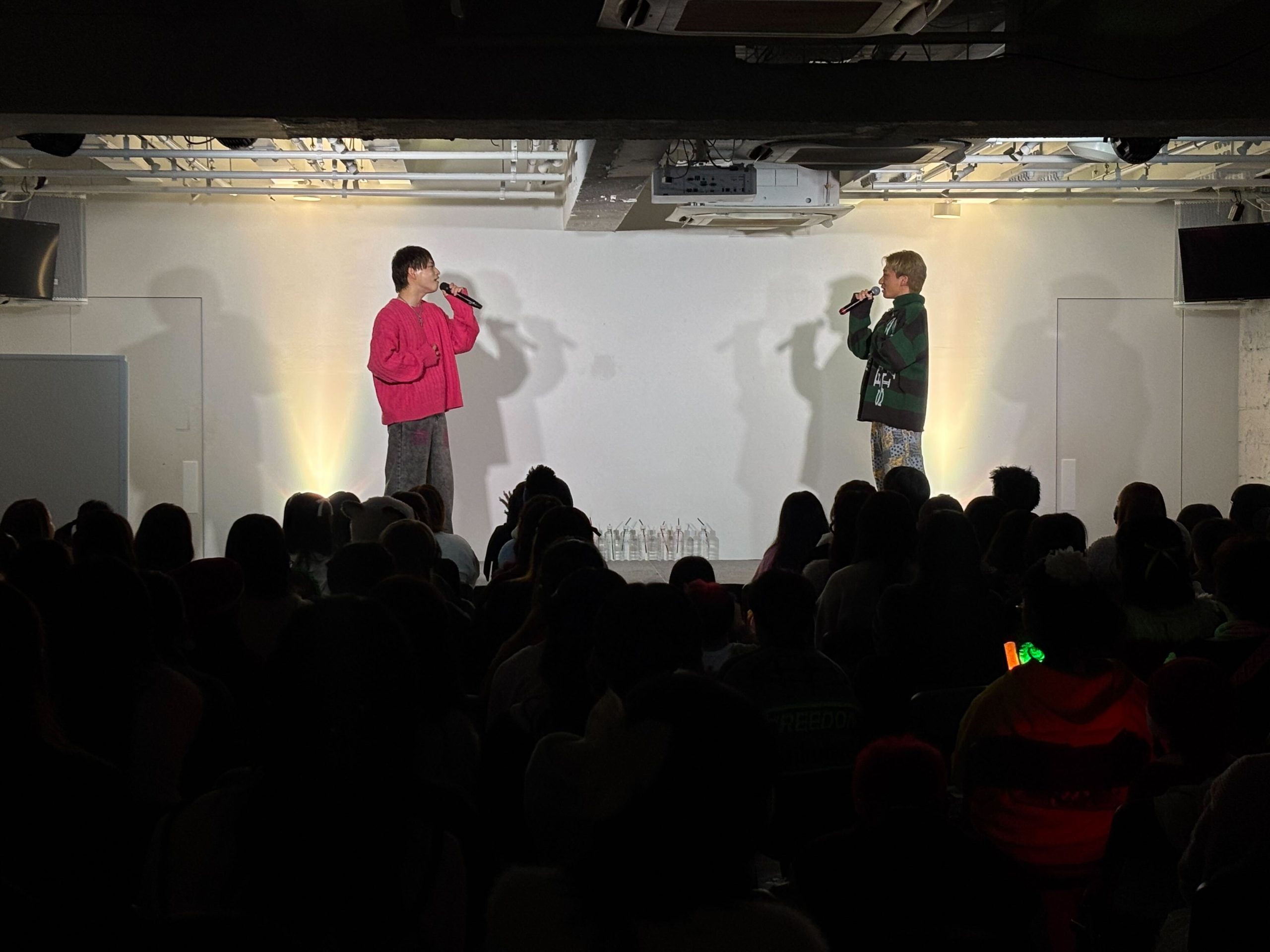 らいおが「2人はもちろん揃えてきた感じですか?」と質問するとりゅうしんは「ユニットだし揃えようかな…とかは一切思ってなくて。今日、車に乗った時『えっ?』って」と話し、偶然だったことを明かすと、そのシンクロレベルに客席からも驚きの声が聞こえます。