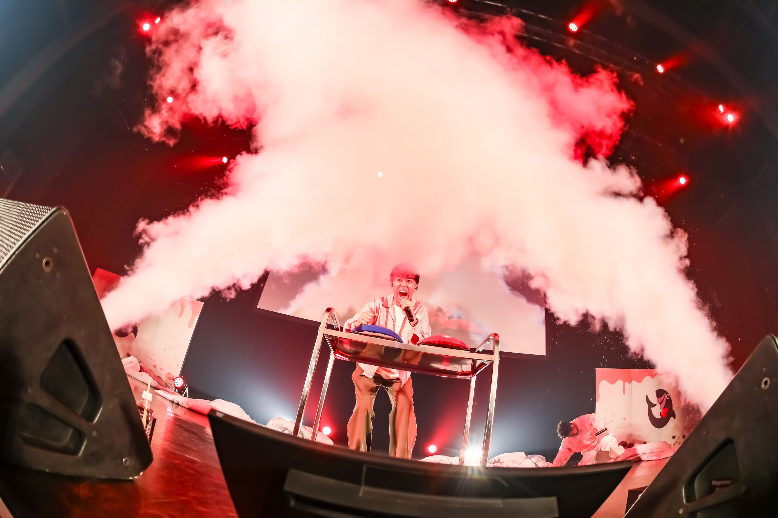 ンダホが客席に向けてホームランを打ち、マサイが時限爆弾を爆発させるなど、ライブならではの演出も。