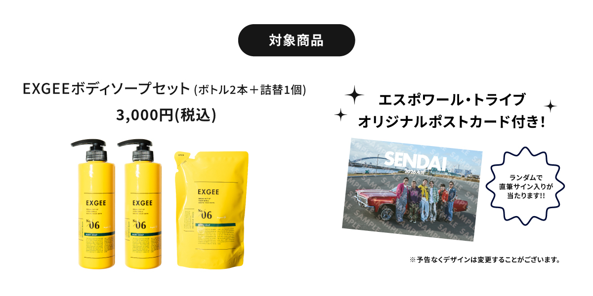 本イベントでは、当日会場にて対象商品「EXGEEボディソープセット(ボトル2本+詰替1個/税込3,000円)」をご購入いただいたお客様が、エスポワール・トライブのメンバーと一緒に写真撮影をすることができます。