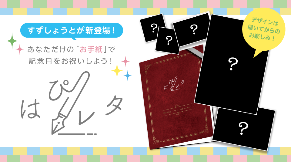『はぴレタ』にすずしょうとが登場! クリエイターから誕生日をお祝いするお手紙が届くサービス 『はぴレタ』にすずしょうとが登場しました! 大切な人の記念日に、『はぴレタ』はいかがでしょう。